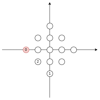 만약, 점들을 오로지 각만을 기준으로 정렬한다면 위의 그림이 예시하는 순서의 정렬도 얼마든지 나올 수 있다(0 -> 1 -> 2에 주목).