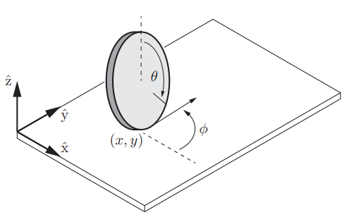 책에서는 아래의 rolling coin 예제를 통해 nonholonomic constraint를 설명한다.