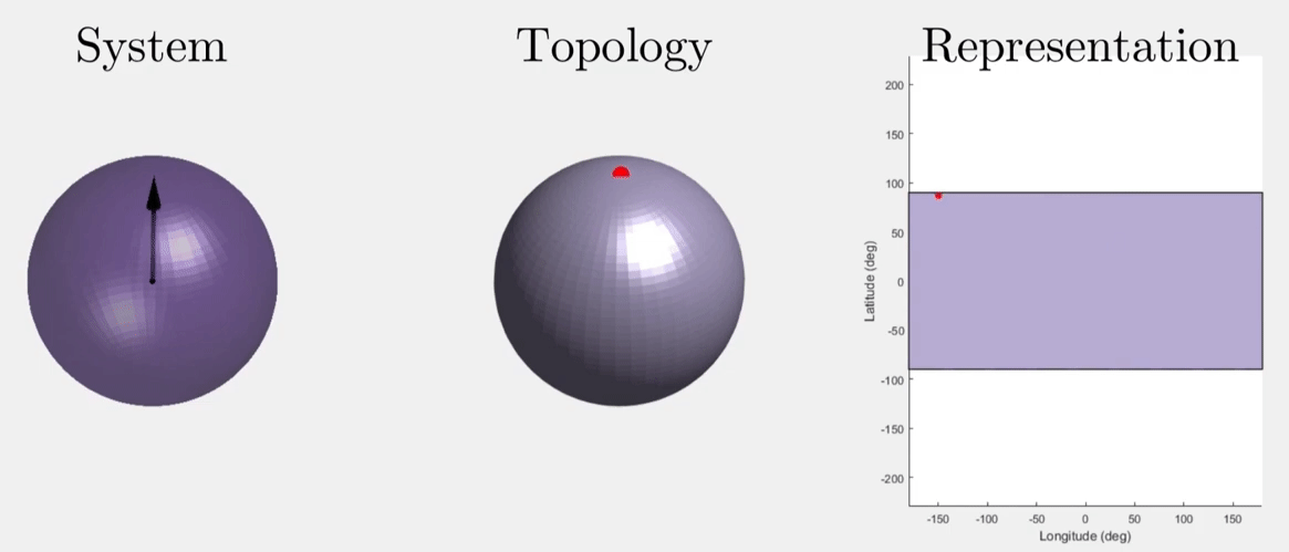 이제 C-space를 어떻게 “표현”할지에 대해서 고민해보자. 바로 위 챕터에서 예시하였던 \(\mathbf{S}^{2}\)를 떠올려보고 이를 표현하는 방법에 대해서 생각해보자.