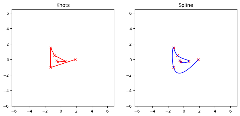 많은 사람들이 오해하는 사실 중 하나는 cubic spline이 마치 \(f: x \rightarrow y\) 를 직접 구해준다고 생각하는 것이다. 그런데, 조금만 생각해보아도 이것은 수학적으로 불가능한 것을 알 수 있다. 예를 들어, 당장 바로 위에서 언급한 그림만 보아도 적색 곡선은 양함수 형태로 나타낼 수 없지 않은가? 그래서, cubic spline은 주로 호장 재매개화를 통해서 \((s_{i}, x_{i}), \,(s_{i}, y_{i})\) 으로 샘플을 찢고(?) 각각에 대해 spline을 활용하여 \(f_{x}: s \rightarrow x\), \(f_{y}: s \rightarrow y\)을 만드는 방법을 사용한다.